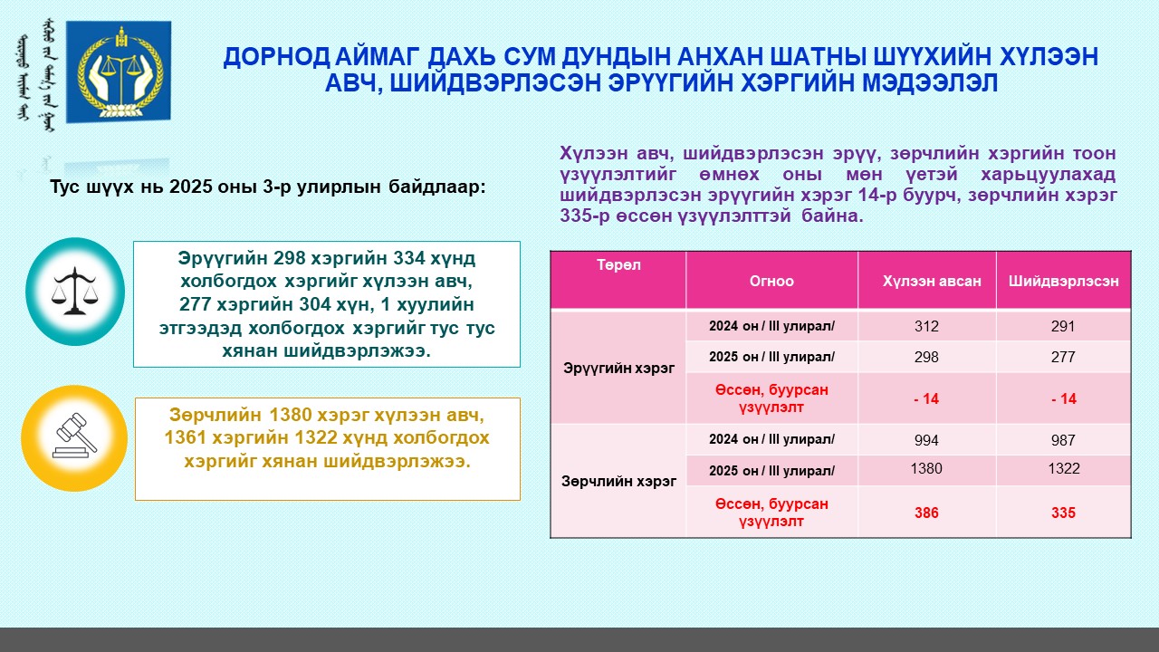 ШҮҮН ТАСЛАХ АЖИЛЛАГААНЫ 3 ДУГААР УЛИРЛЫН МЭДЭЭ