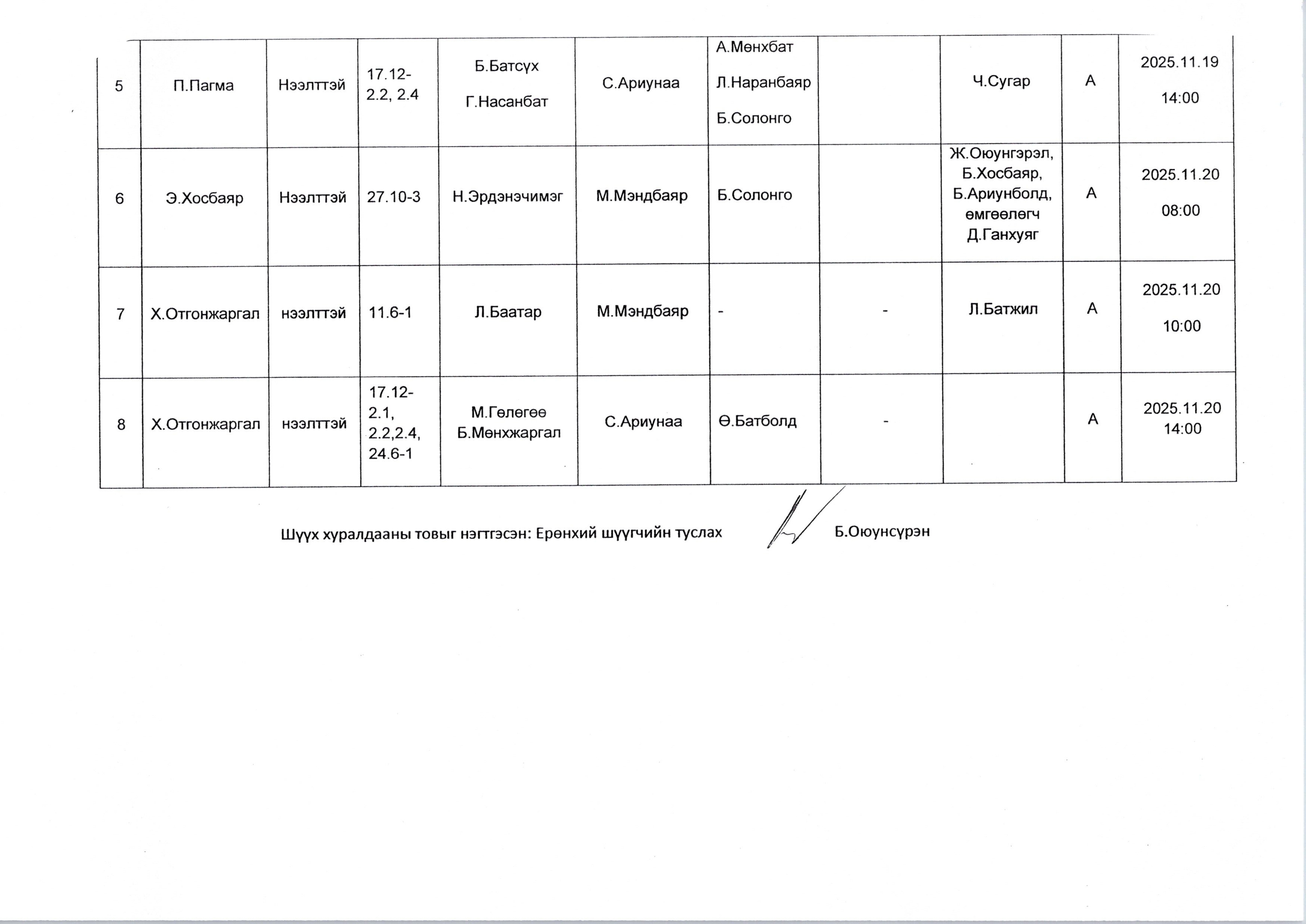 ДОРНОД АЙМГИЙН ЭРҮҮ, ИРГЭНИЙ ХЭРГИЙН ДАВЖ ЗААЛДАХ ШАТНЫ ШҮҮХИЙН 2025.11.14-НЫ ӨДРИЙН ШҮҮХ ХУРАЛДААНЫ ЗАР
