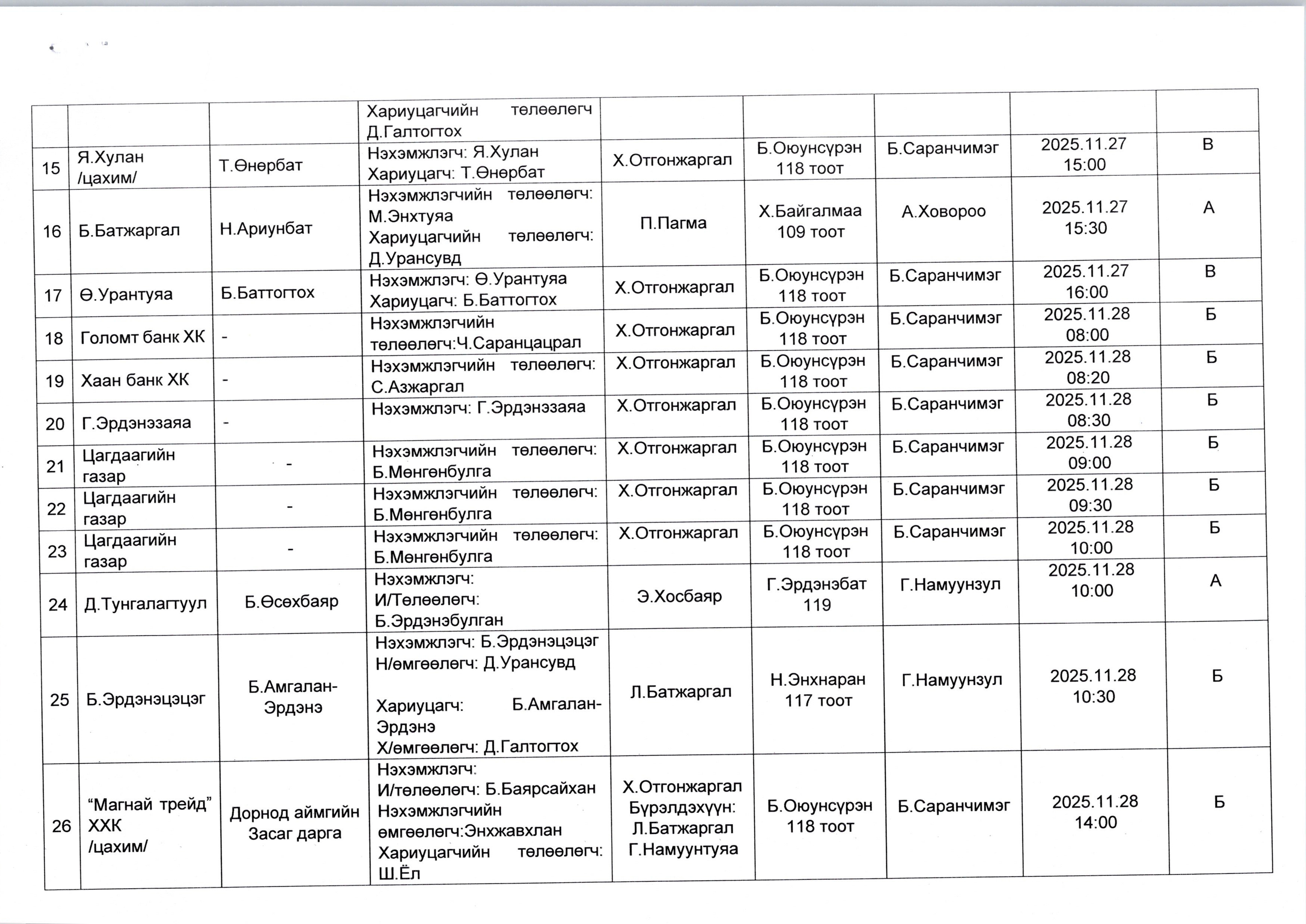 ДОРНОД АЙМАГ ДАХЬ СУМ ДУНДЫН АНХАН ШАТНЫ ШҮҮХИЙН 2025.11.24-НИЙ ӨДРӨӨС 2025.11.28-НЫ ӨДРИЙН ХУГАЦААНД ХИЙГДЭХ ЭРҮҮГИЙН ХЭРГИЙН ШҮҮХ ХУРАЛДААНЫ ЗАР