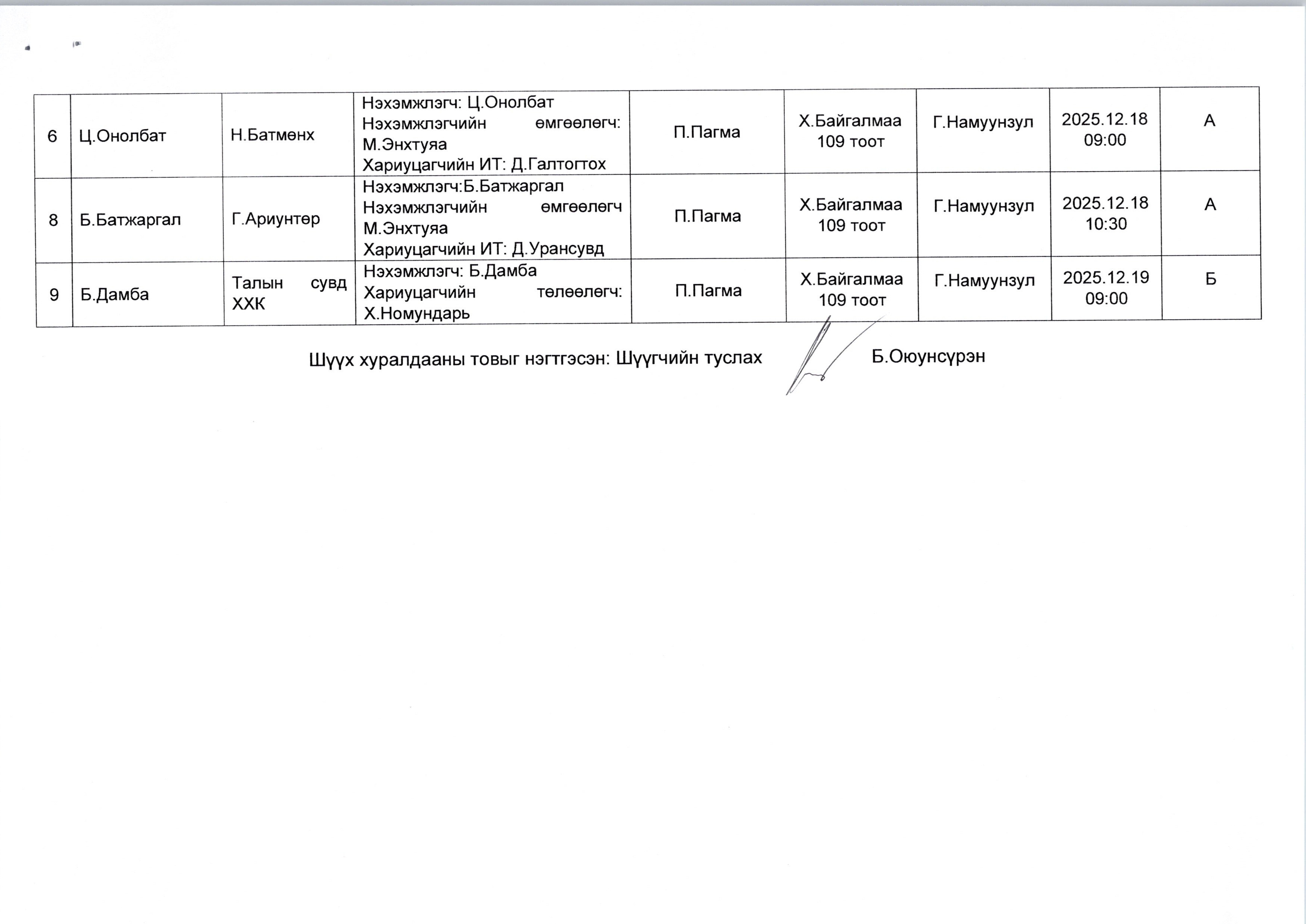 ДОРНОД АЙМАГ ДАХЬ СУМ ДУНДЫН АНХАН ШАТНЫ ШҮҮХИЙН 2025.12.15-НЫ ӨДРӨӨС 2025.12.19-НИЙ ӨДРИЙН ХУГАЦААНД ХИЙГДЭХ ЭРҮҮГИЙН ХЭРГИЙН ШҮҮХ ХУРАЛДААНЫ ЗАР