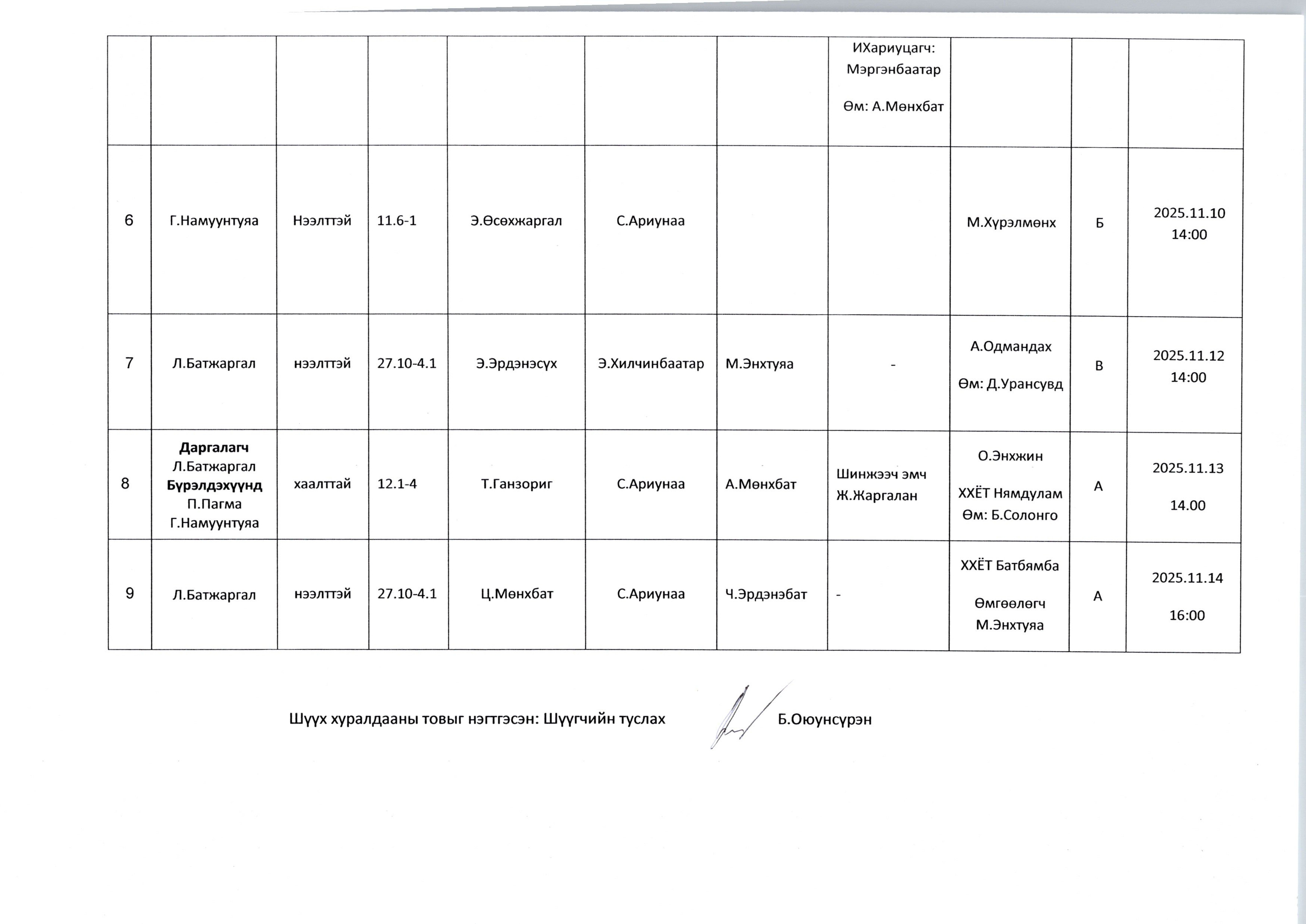 ДОРНОД АЙМАГ ДАХЬ СУМ ДУНДЫН АНХАН ШАТНЫ ШҮҮХИЙН 2025.11.17-НЫ ӨДРӨӨС 2025.11.21-НИЙ ӨДРИЙН ХУГАЦААНД ХИЙГДЭХ ЭРҮҮГИЙН ХЭРГИЙН ШҮҮХ ХУРАЛДААНЫ ЗАР