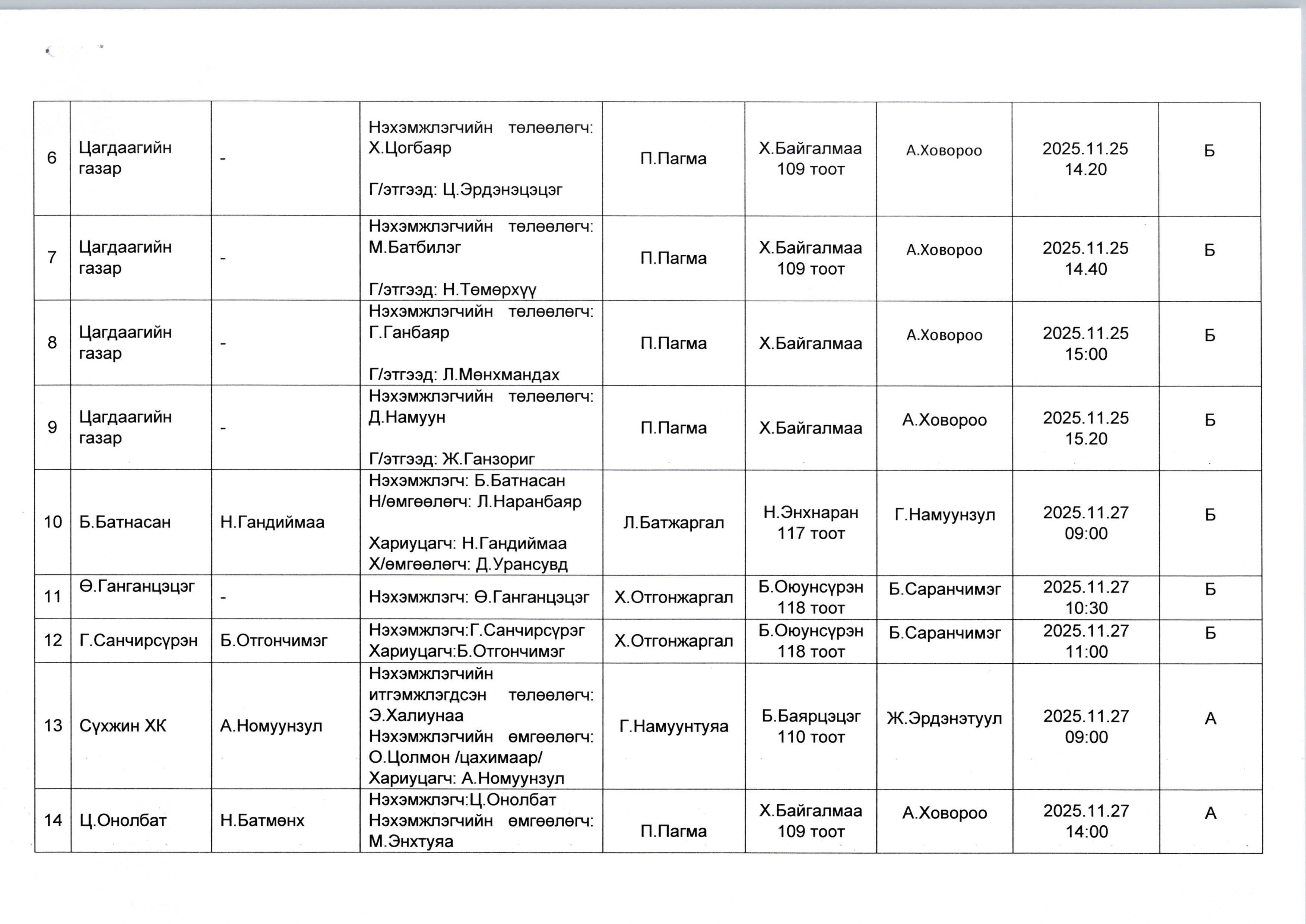 ДОРНОД АЙМГИЙН ЭРҮҮ, ИРГЭНИЙ ХЭРГИЙН ДАВЖ ЗААЛДАХ ШАТНЫ ШҮҮХИЙН 2025.11.14-НЫ ӨДРИЙН ШҮҮХ ХУРАЛДААНЫ ЗАР