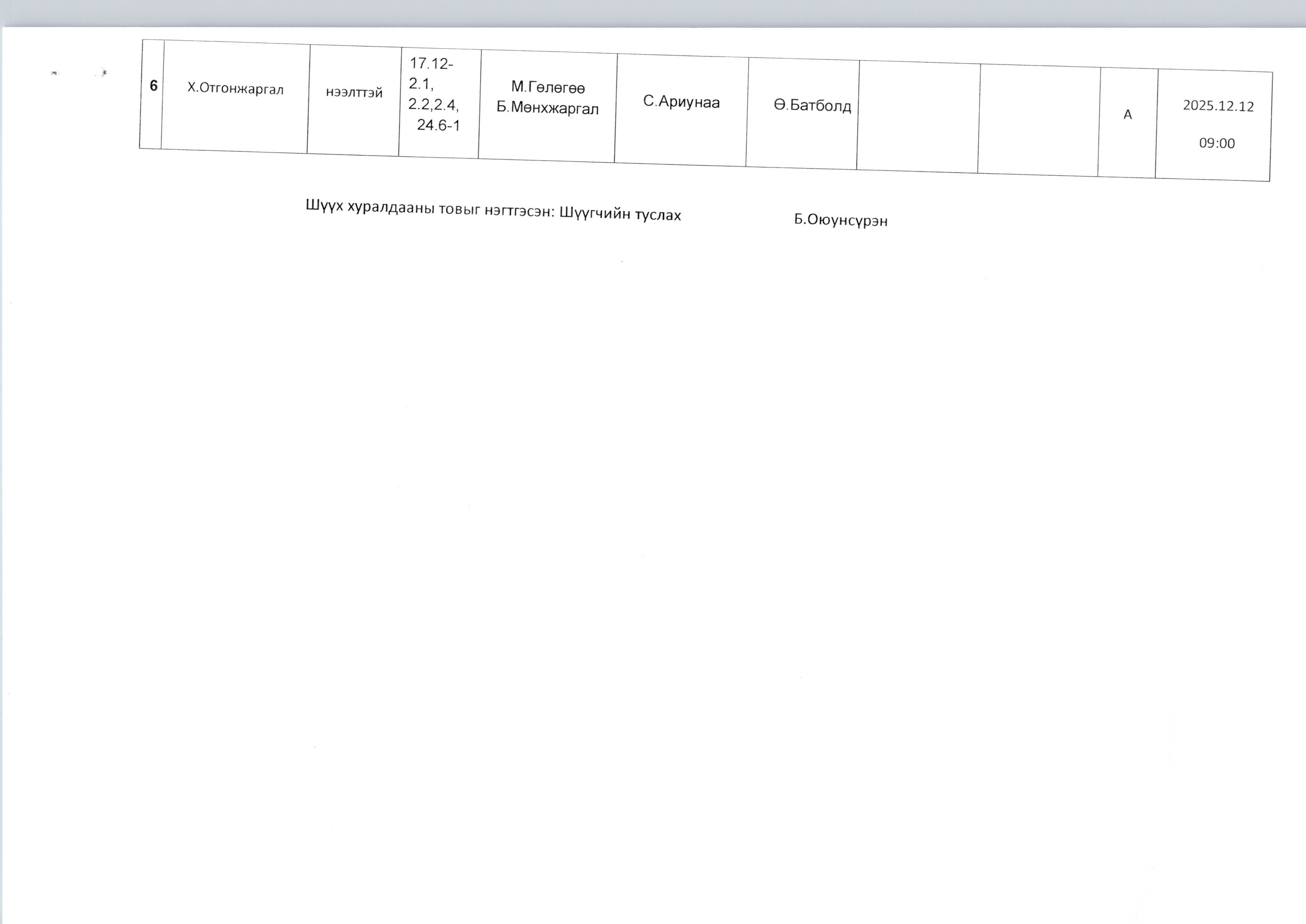 ДОРНОД АЙМАГ ДАХЬ СУМ ДУНДЫН АНХАН ШАТНЫ ШҮҮХИЙН 2025.12.08-НЫ ӨДРӨӨС 2025.12.12-НЫ ӨДРИЙН ХУГАЦААНД ХИЙГДЭХ ЭРҮҮГИЙН ХЭРГИЙН ШҮҮХ ХУРАЛДААНЫ ЗАР