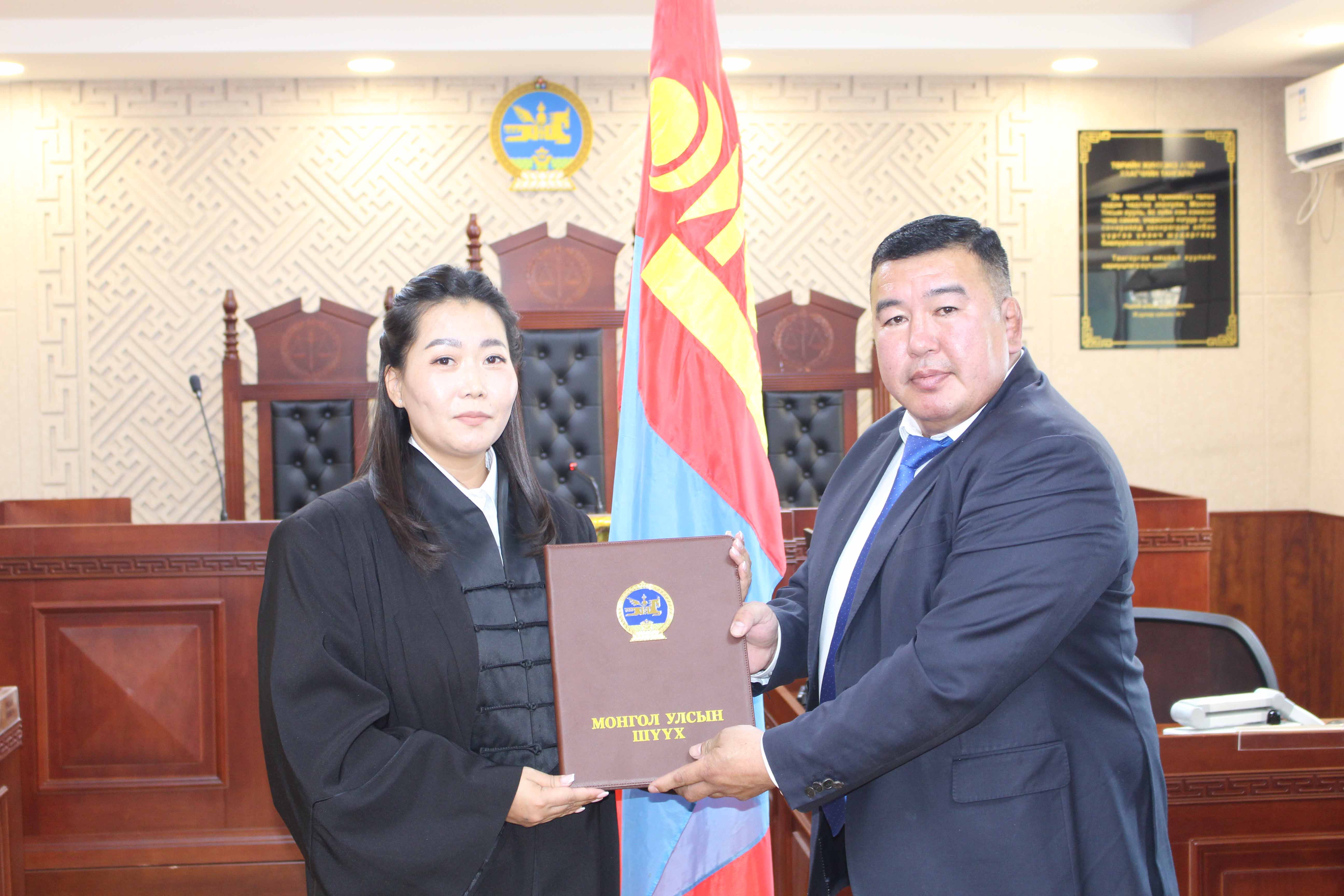 2025-12-15 | 145Монгол Улсын Ерөнхийлөгчийн 2025 оны 12 дугаар сарын 10-ны өдрийн 182 дугаартай зарлигаар Дорнод аймаг дахь Сум дундын анхан шатны шүүхийн шүүгчийн албан тушаалд томилогдсон Олонтүмэнгийн Энхтуул шүүгчийн “Тангараг өргөх ёслолын арга хэмжээ”-г Шүүгчийн тангараг өргөх журамд заасны дагуу 2025 оны 12 дүгээр сарын 15-ны өдөр зохион байгууллаа.