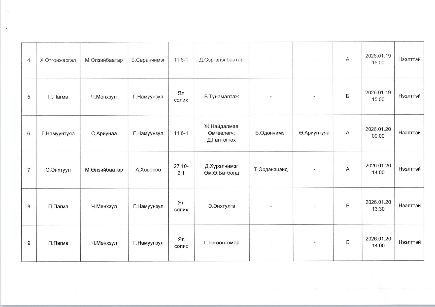 ДОРНОД АЙМАГ ДАХЬ ЗАХИРГААНЫ ХЭРГИЙН АНХАН ШАТНЫ ШҮҮХИЙН 2026.01.16-НЫ ӨДӨР ХИЙГДЭХ ШҮҮХ ХУРАЛДААНЫ ЗАР